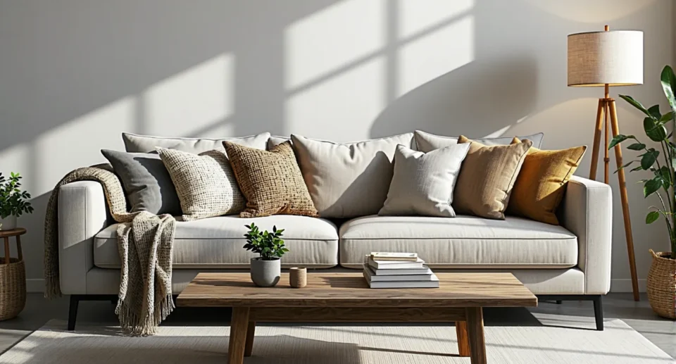 Sama drewniana konstrukcja może być twarda, dlatego kluczem do pełnego relaksu są tekstylia. Na siedzisko wybierz grube poduchy dedykowane do mebli z palet (mają one standardowe wymiary 120×80 cm). Wybieraj materiały wodoodporne i łatwe w czyszczeniu.